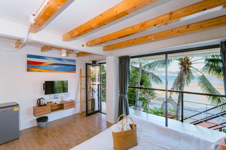 Our Deluxe Room at The Cozy Beach Front is thoughtfully designed for those who seek a little more space, more sunlight, and more moments of pure serenity. With contemporary coastal decor and a private balcony overlooking the horizon, it’s the perfect backdrop for your ultimate seaside retreat.”